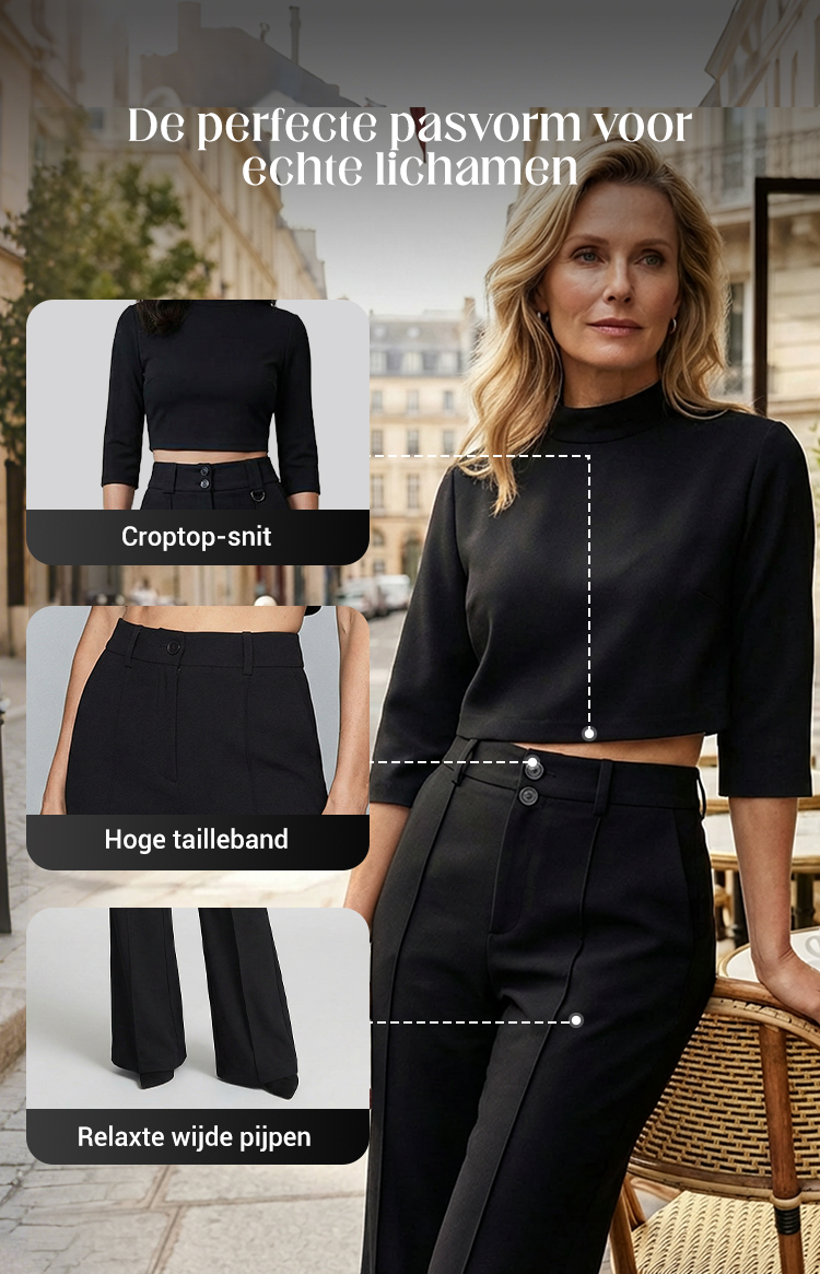 Dames Twee-delige Set: Elegante Crop Top & Wijde Broek